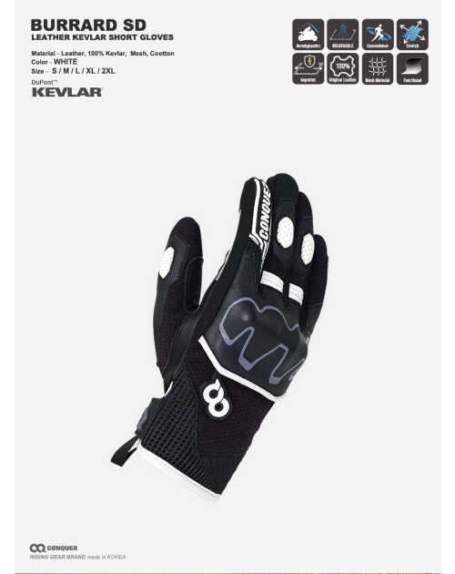 CQ BURRARD KEVLAR SHORT GLOVES WHITE (컨쿼 버라드 숏 글러브 화이트) 요약정보 및 구매