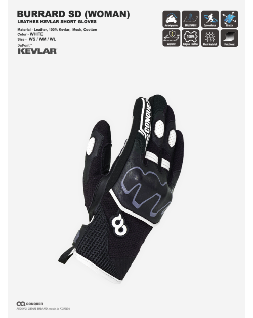 CQ BURRARD KEVLAR SHORT GLOVES WOMEN WHITE (컨쿼 버라드 숏 글러브 여성 화이트) 요약정보 및 구매